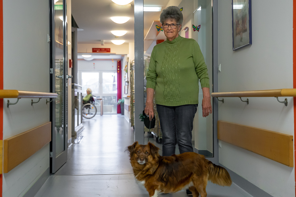 Gertrude Peinhopf (76) ist aus dem Pflegewohnhaus Preding nicht mehr wegzudenken. Seit 2005 hilft die Pensionistin hier freiwillig mit. Täglich kommt sie mit ihrer Hündin Jenny vorbei, leistet den Bewohnern Gesellschaft und versorgt die Ziegen und Hunde, die im Heim gehalten werden. Besonders jene Bewohner, die nicht oft Besuch bekommen, freuen sich über die Anwesenheit von Gertrude und ihrer vierbeinigen Begleiterin.
